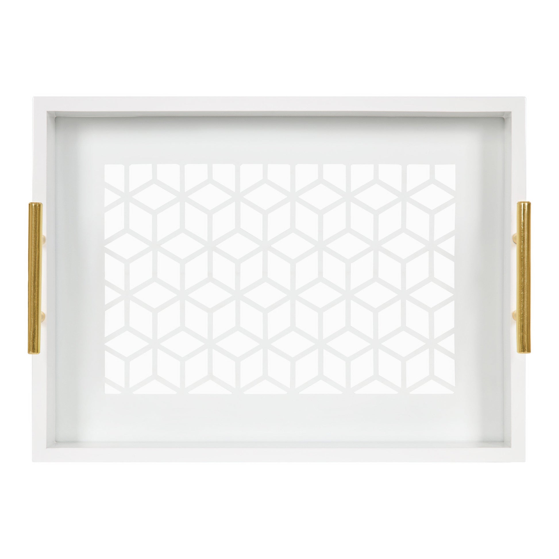 A decorative wooden tray is one of those accent pieces that is not only handy to use but also can look so great styled on your coffee table or ottoman. The elegant look of the Caspen rectangle tray creates fashionable function in an ingenious design. The subtle geometric cut of the wooden base adds a bit of ornate interest while the glass that covers it ensures a smooth surface for placing everything from drinks to perfumes.