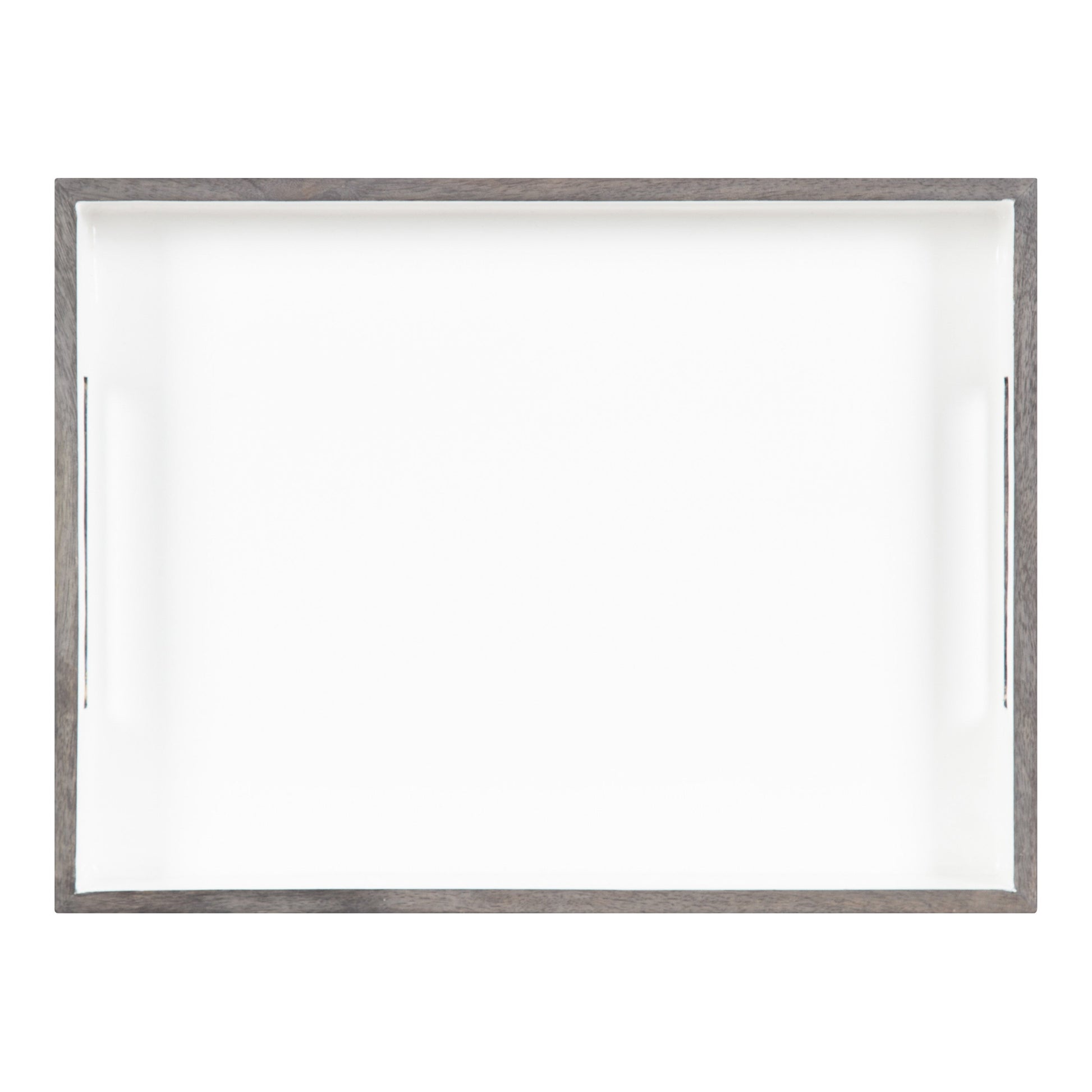 Decorate your home with the Ehrens tray to showcase your elevated modern farmhouse fashion. This beautiful tray features an enamel two-tone finish, giving it a modern farmhouse look. It was handcrafted in India from robust, solid mango wood, giving it a one-of-a-kind look in terms of texture and finish. Use this decorative accent tray to showcase your favorite keepsakes and decor accents, or use it as a functional catch-all on your console, vanity, ottoman, or dresser.