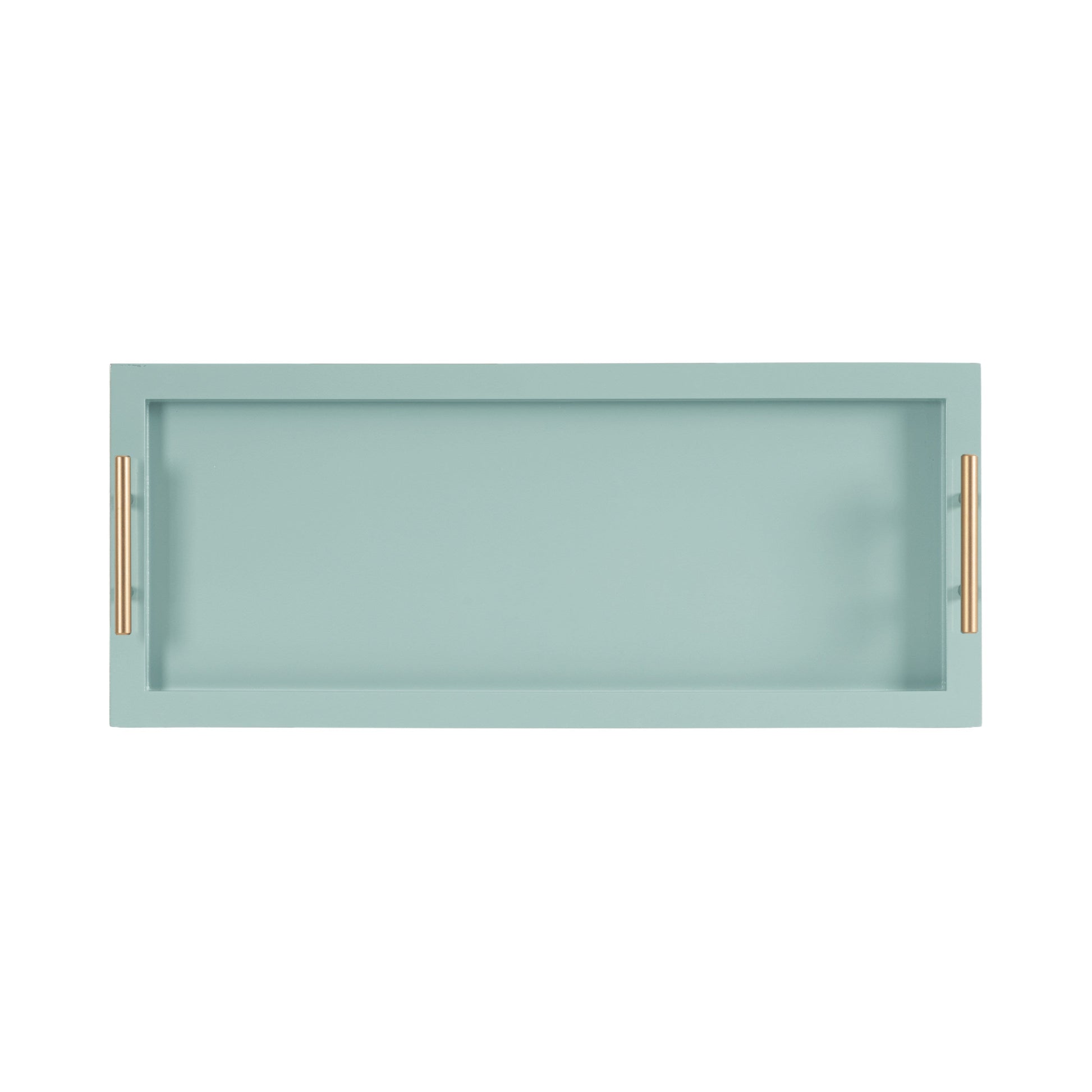 Bring classic glam style into your home with this charming rectangular accent tray with metal handles. Place this narrow metal tray on your entrance console table as a catchall tray to hold your keys and change as you come and go. This metal tray can also be used as a decorative accent on an ottoman to hold your beverages or on your vanity for makeup organization. Constructed of sturdy iron with a charming finish and useful metal handles, this tray is dependable to carry your cocktails from room to room! An update to the classic accent tray, the base has a raised edge to keep your items more secure when transporting them. The tray has pads on the bottom to protect surfaces. Its versatile size makes it great for serving snacks on little plates or as a decorative display option.