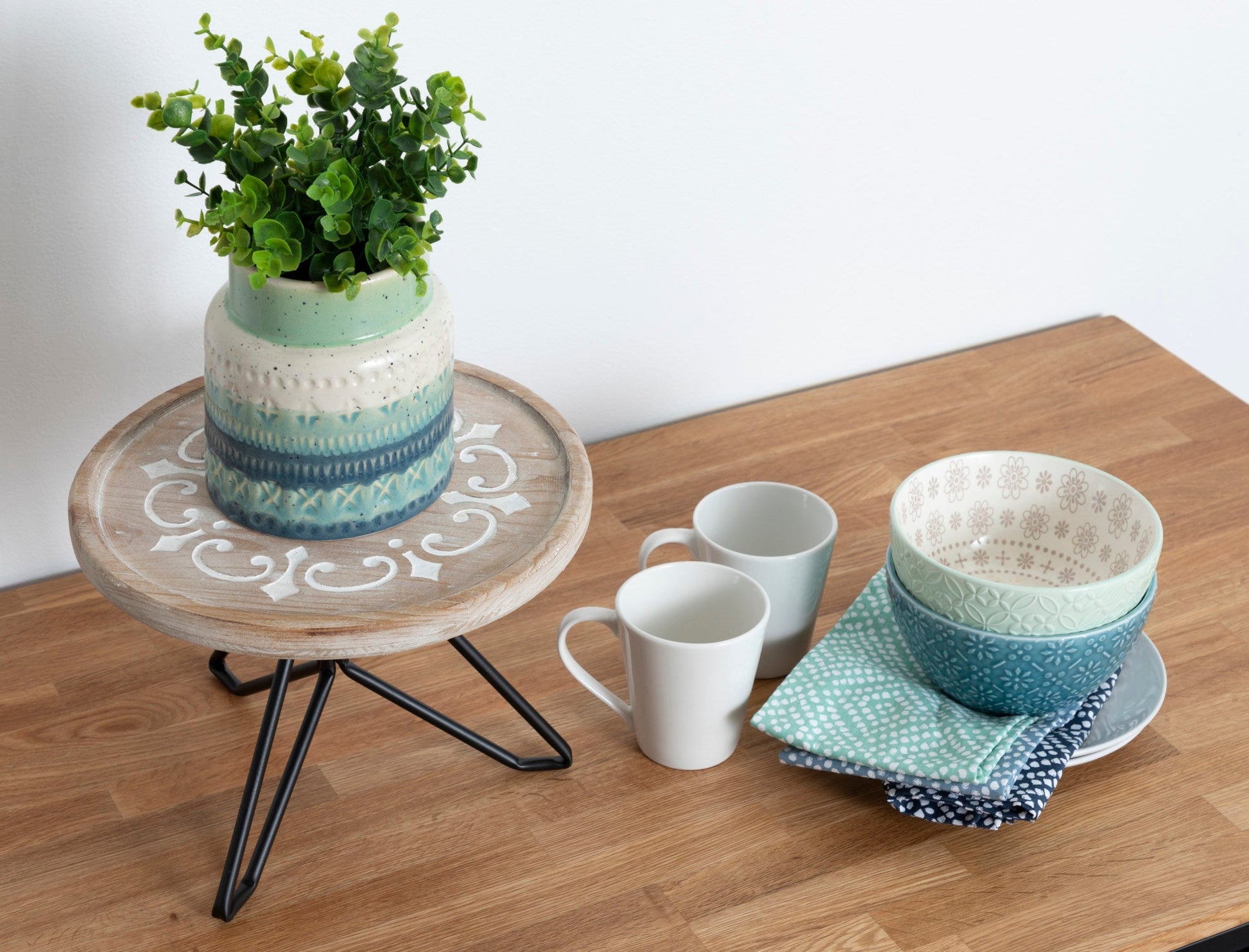 Sherald Round Wood Tray with Metal Stand