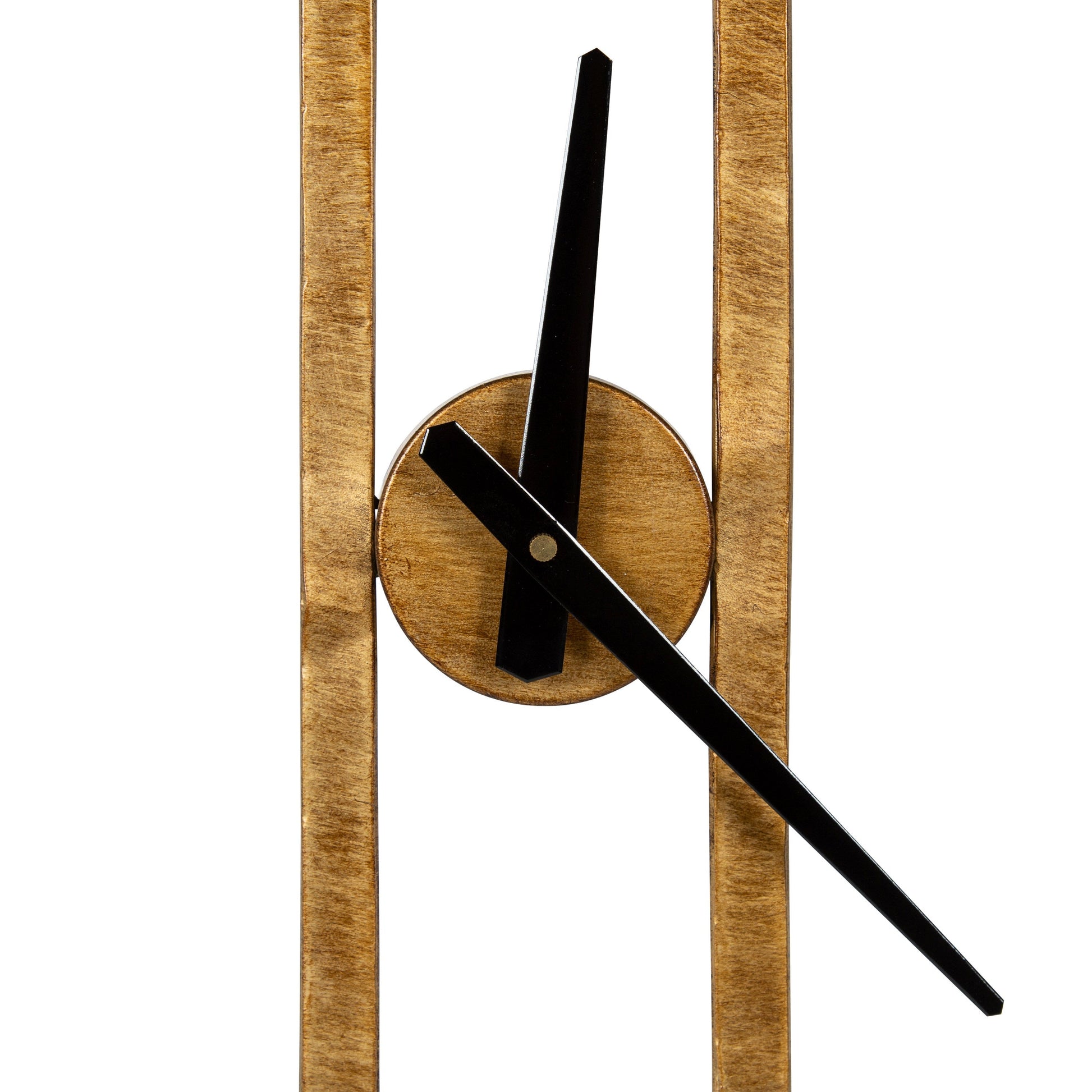 - Constructed of metal with a brushed finish and metal hands