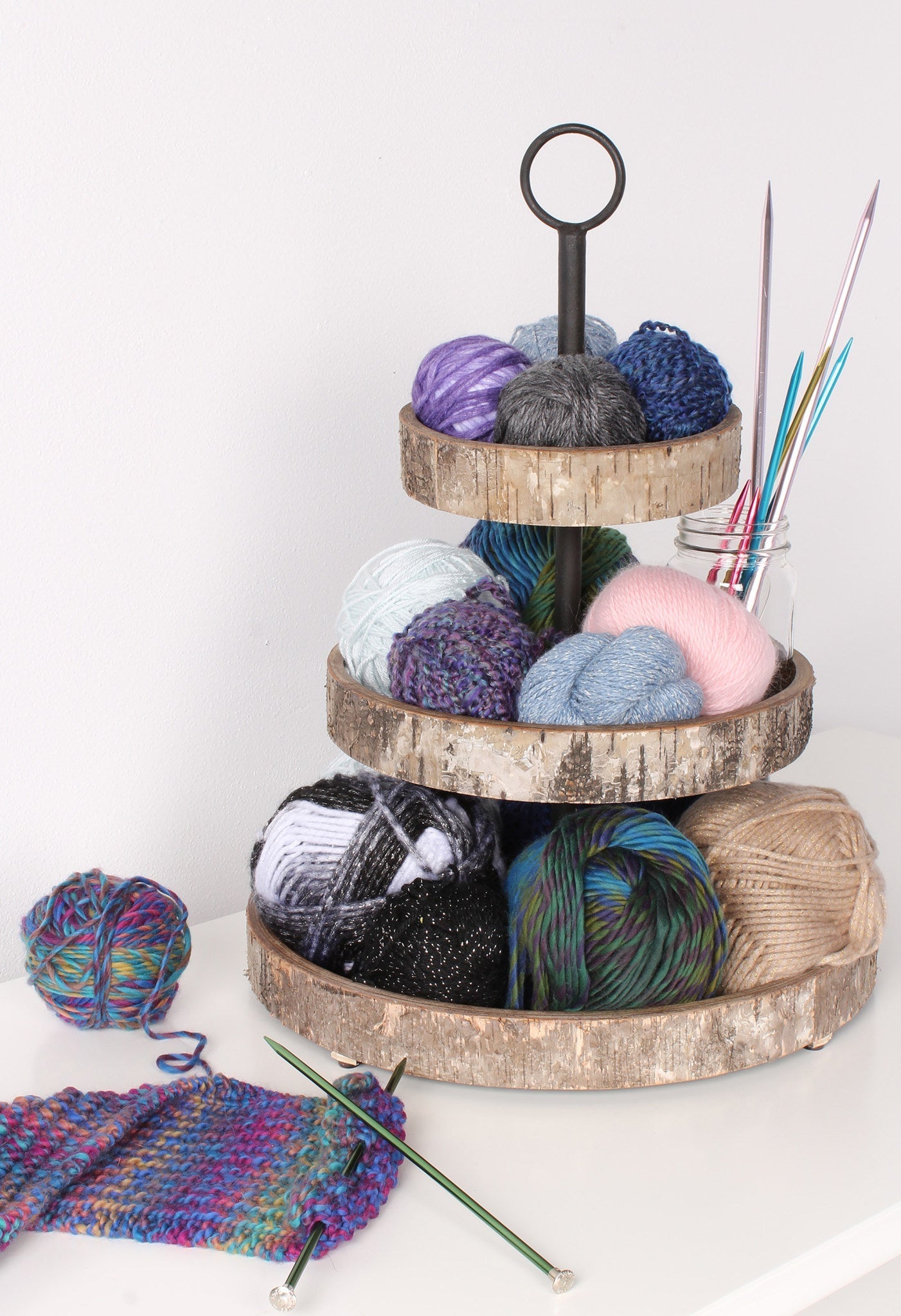 White Birch Wood Rustic 3 Tiered Tray