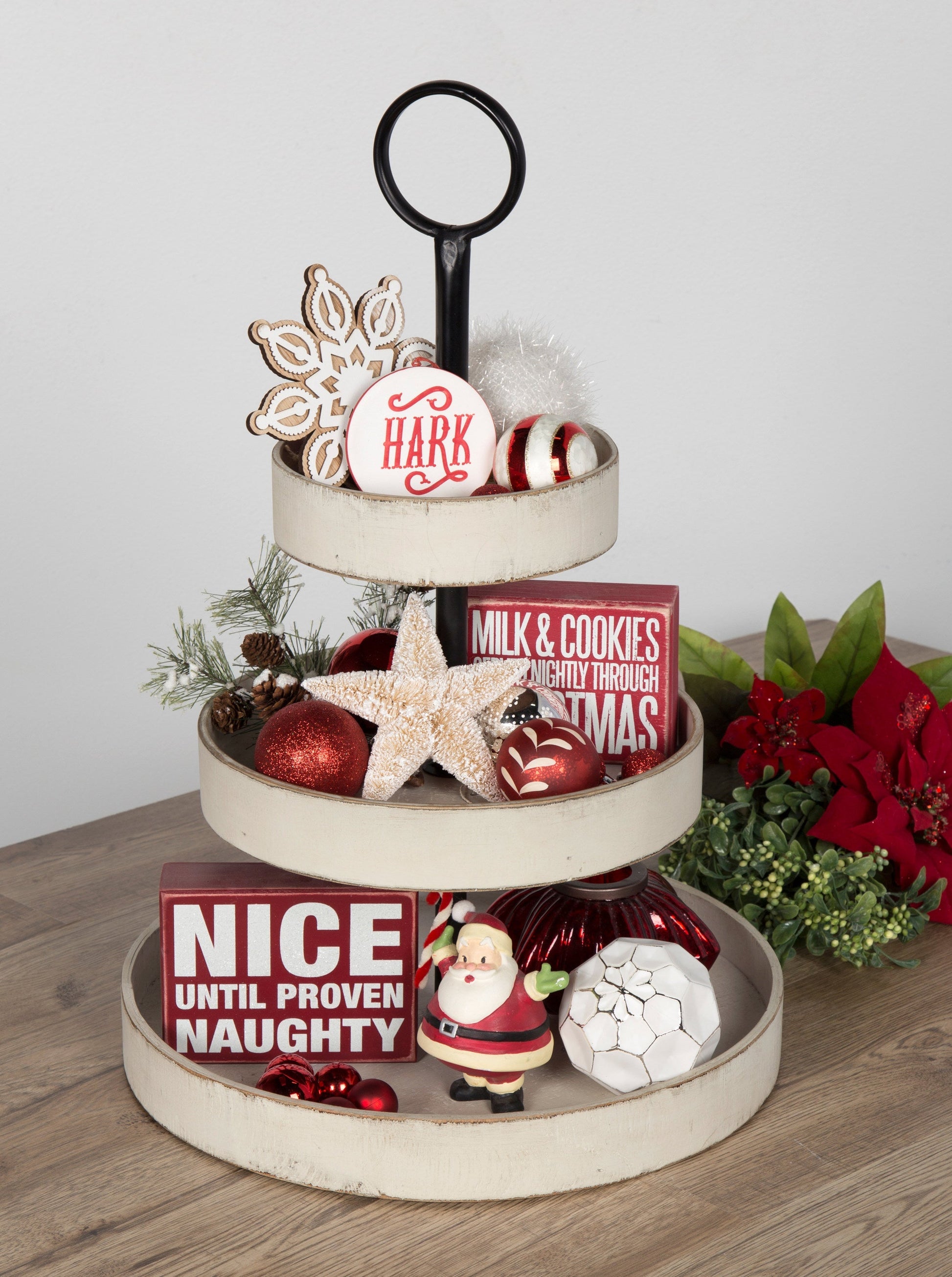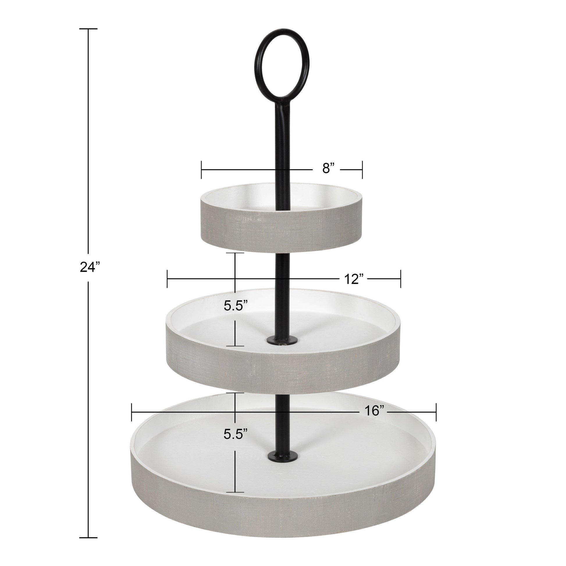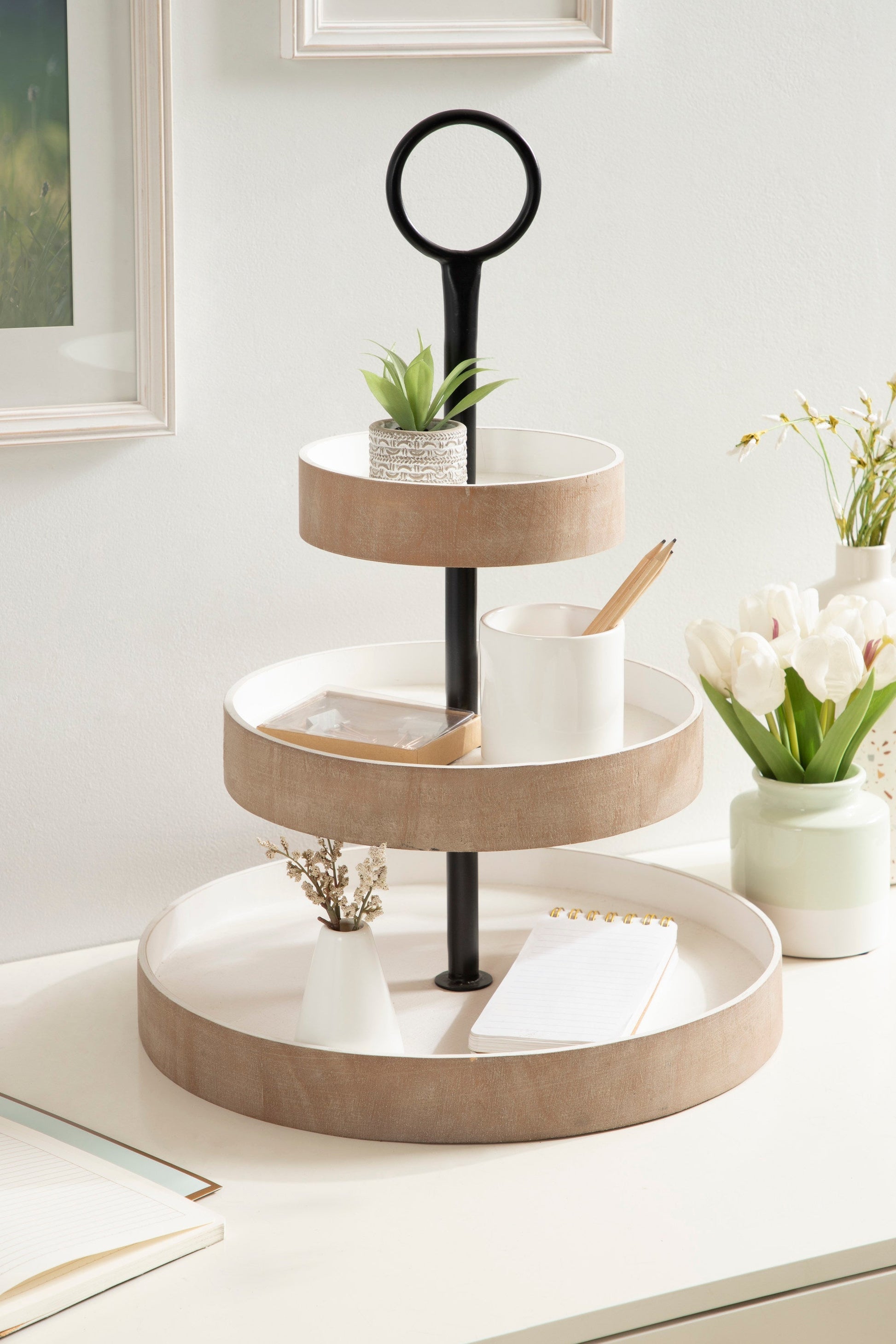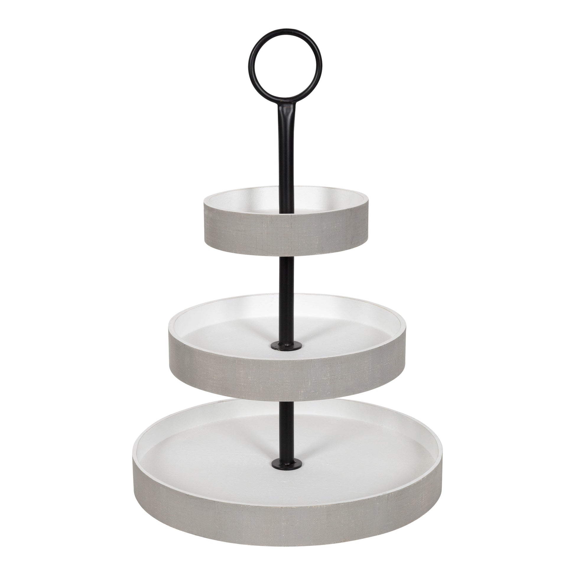 Create a home that relishes in the comfort of classic rustic design with the Woodmont tray. This lovely wood tray is constructed with three staggered, round tiers, making it a striking display piece with multiple functions. Its vintage design comes from its distressed finish, creating a look reminiscent of classic antiquity. This tiered tray is fantastic whether it's used as a decorative centerpiece, storage for jewelry and makeup, or a serving tray at a coffee bar or gathering.